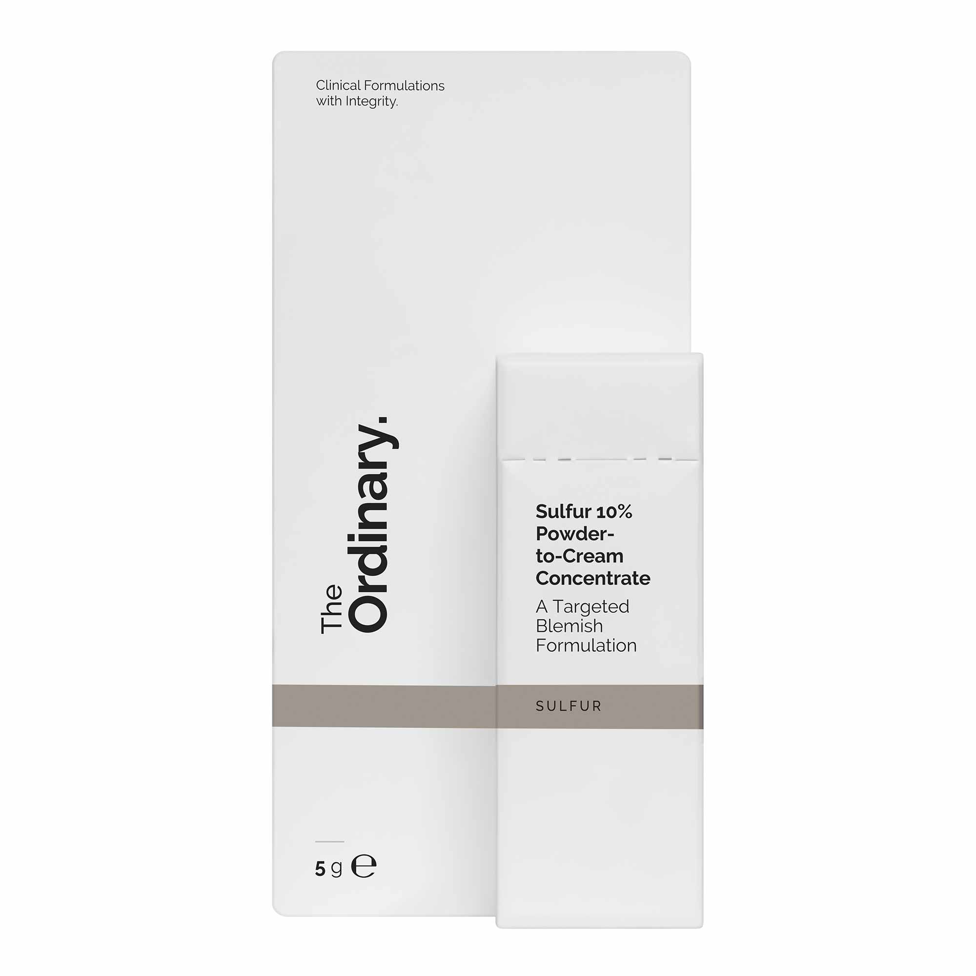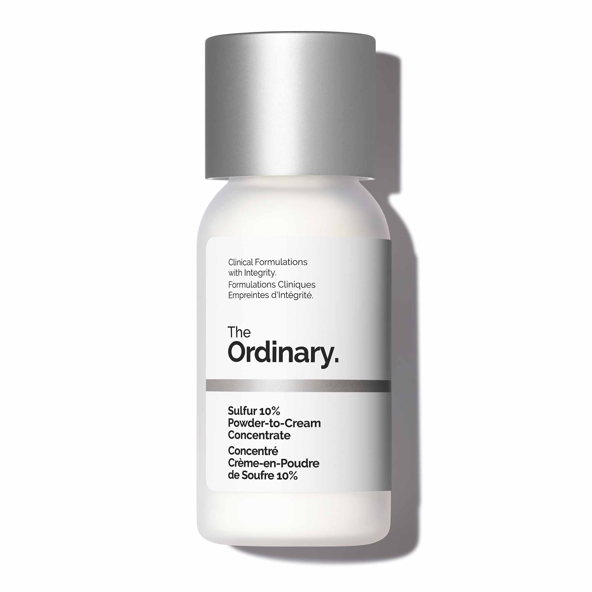 Sulfur 10% Powder-to-Cream Concentrate is a targeted treatment that helps reduce the appearance of pimples just one hour after application. The formula contains 10% colloidal sulfur, which works locally to calm the inflammatory process. Colloidal sulfur has smaller particles that penetrate the skin more easily, and the sulfur scent is milder. Gentle enough for sensitive skin.